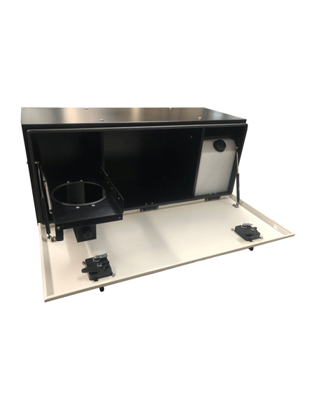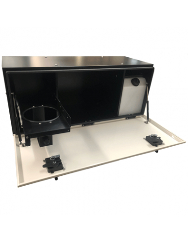 Bandeja extraíble en lado izquierdo para colocación de hornillo y deposito de agua en el lado derecho con grifo en el exterior