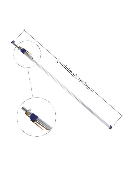 Puntales y tablas de separación BARRA DE SUJECION DE CARGA DE MUELLE TELESCOPICO 02303002060 Barra telescópica con muelle para sujeción de cargaAcero galvanizadoL= 2260 mm L'= 2660Peso: 8 Kg Ver producto