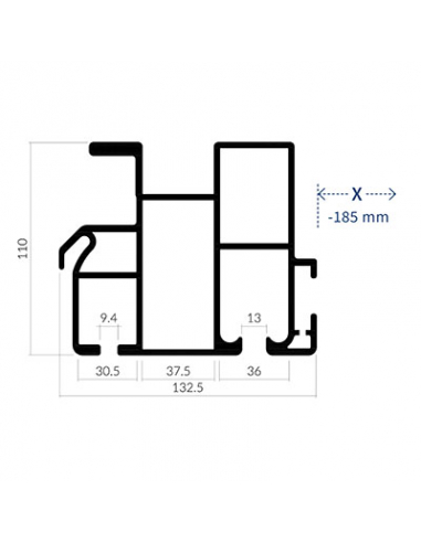 La cota X hace referencia a la distancia libre entre tricarriles (a la distancia total hay que restarle la indicada bajo la cota X en función del tipo de tricarril: T110/ -185 mm, T88.5/ -100 mm, T150/ -56 mm, T165/ libre ancho cama)